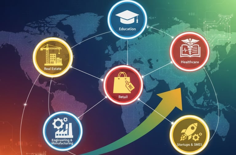 🏗️ Real Estate 🎓 Education 🏥 Healthcare 🛍️ Retail & FMCG 💼 Startups & SMEs ⚙️ Engineering & Manufacturing