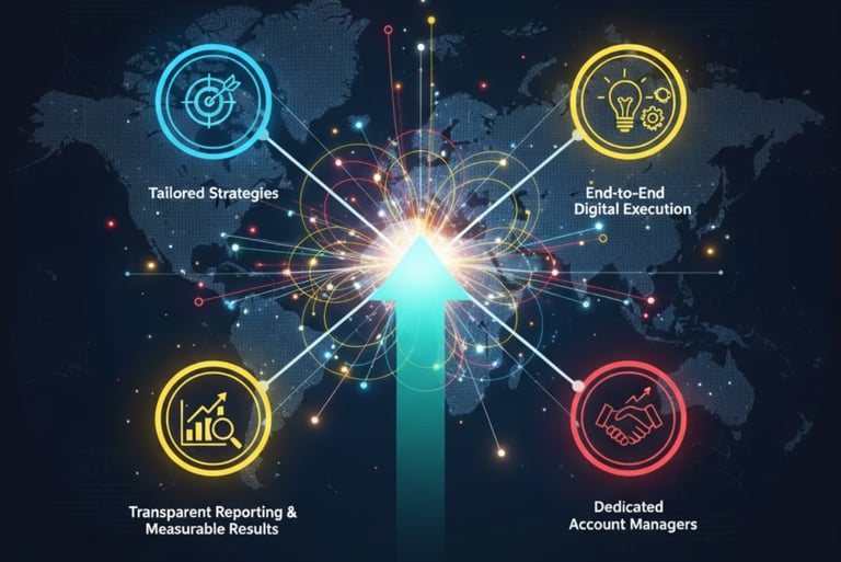 We deliver data-driven, ROI-focused campaigns that help businesses increase visibility, attract quality leads, and grow faster — across real estate, education, healthcare, retail, manufacturing, and more.